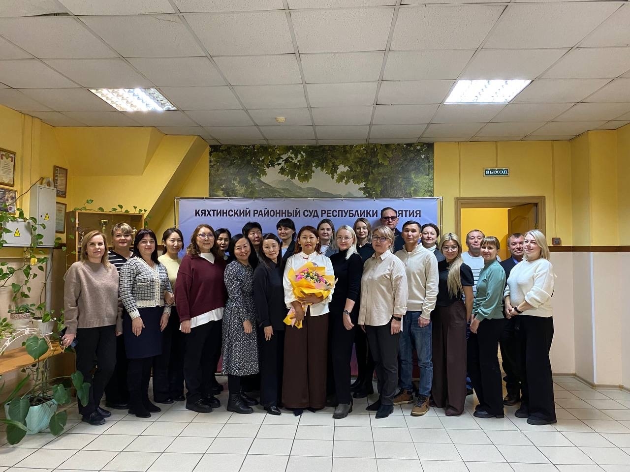 Указом Президента Российской Федерации от 14.11.2025 № 840 председатель Кяхтинского районного суда Республики Бурятия Тараева Ирина Анатольевна назначена на должность судьи Верховного суда Республики Бурятия. Коллектив Кяхтинского районного суда – судьи, работники аппарата суда, мировые судьи Кяхтинского района поздравили Ирину Анатольевну с назначением на новую должность, пожелали успехов в работе и высоких профессиональных достижений. В ответном слове Ирина Анатольевна поблагодарила коллег за совместную работу, за внимание и добрые слова в ее адрес. |